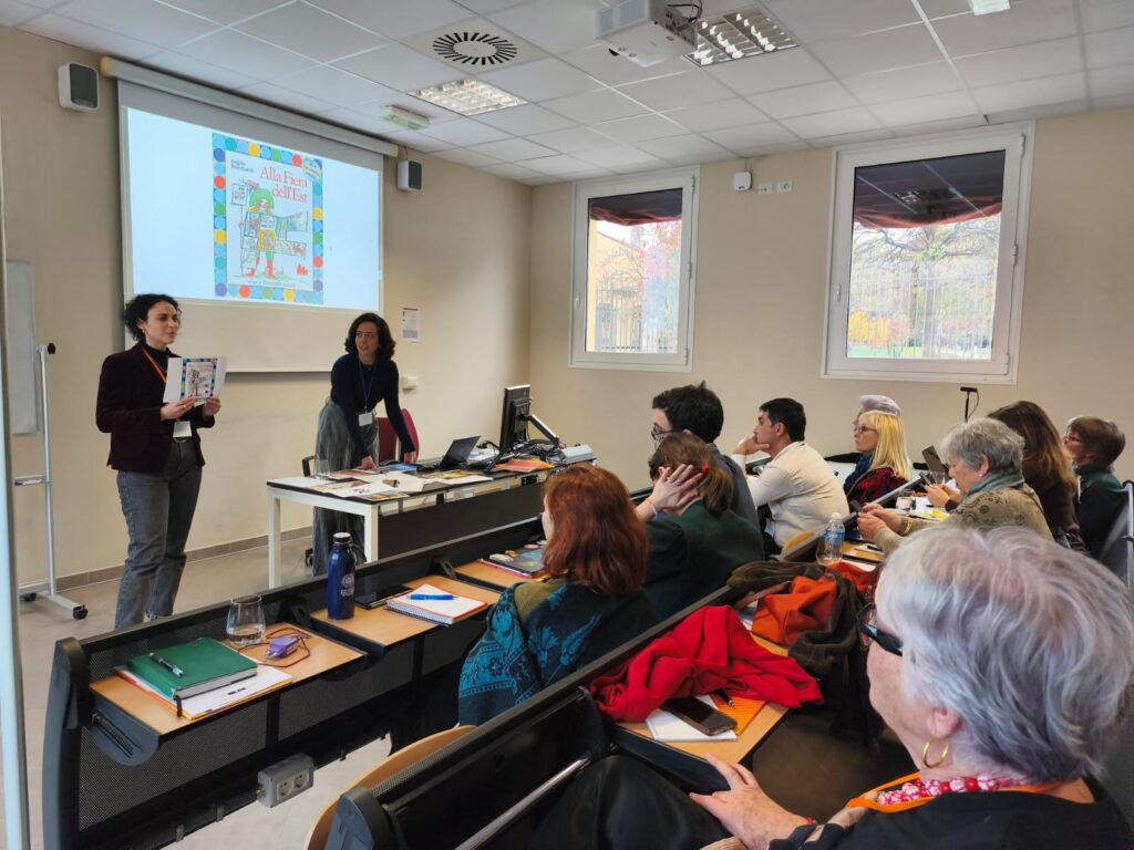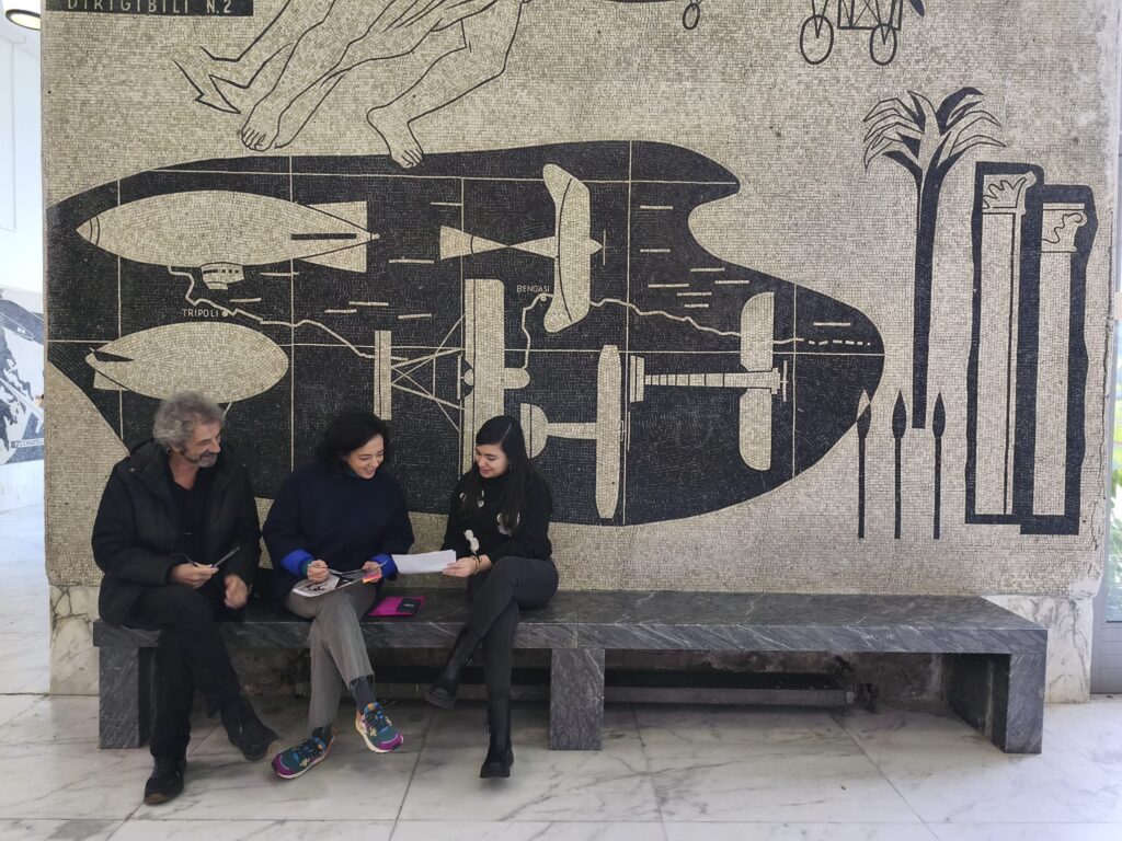 Our visit to Forlì the following day, organised by DEINA, deepened the reflection. Walking along Viale della Libertà, participants engaged with ATRIUM architecture through an interactive gamebook focused on childhood under fascism. We then stepped inside the former Bruno Mussolini Aeronautical College, where we were invited to examine Angelo Canevari’s mural from fascist times, sparking a debate on whether such works should be preserved in educational settings, and if so, how. In the afternoon, Maria Laura Gasparini (also a researcher at CAST UNIBO) guided us through strategies for governance and sustainability in transnational cultural networks, and the AEPJ team also shared with the participants an update on the improvements planned for ERJH communication in 2025.