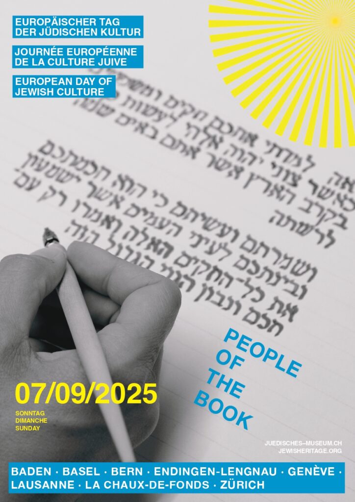 This year, the European Day of Jewish Culture invites you to discover the richness of Jewish life, history, and creativity under the inspiring theme “People of the Book.” Across eight Swiss cities – Baden, Basel, Bern, Endingen-Lengnau, Geneva, Lausanne, La Chaux-de-Fonds, and Zurich – diverse events will open windows into Jewish traditions, texts, and culture.