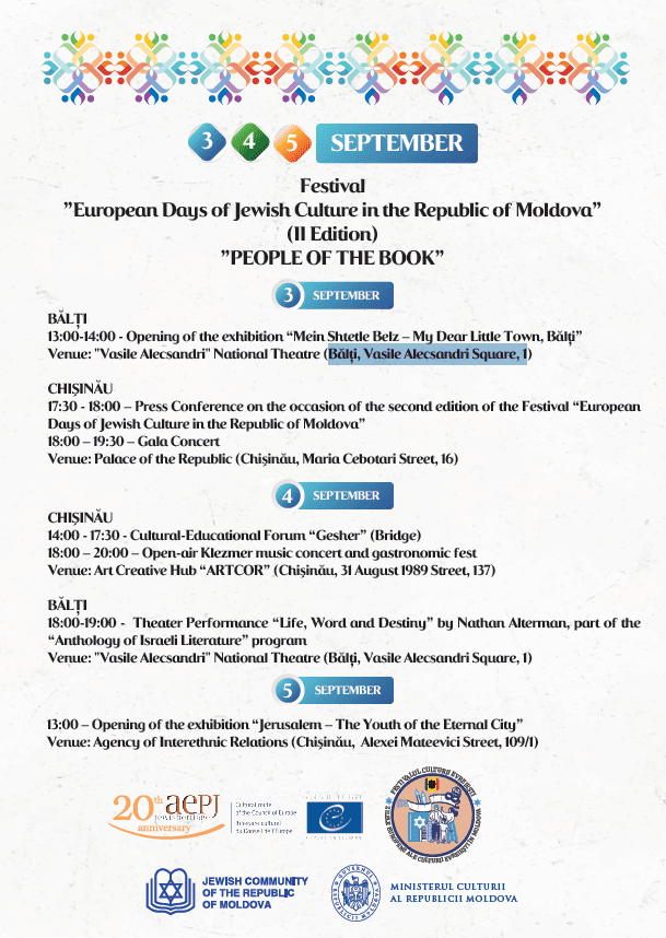 An evocative exhibition dedicated to the Jewish heritage of Bălți, reflecting the vibrant cultural and historical life of the shtetl through photographs, documents, and personal stories.