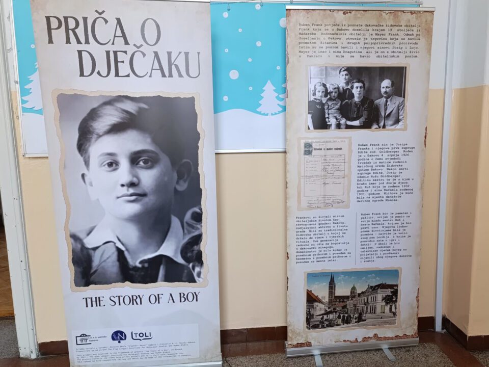 Project "The Story of a Boy" is an educational initiative that was jointly implemented as an inter-school project by students from the Vladimir Nazor Elementary School and the Antun Gustav Matoš Gymnasium in Đakovo under the leadership of teachers Mira Racić and Ines Jančula. The aim of the project was to introduce students to the topic of the Holocaust through the personal story of a Jewish boy, Ruben Frank, born in Đakovo in 1926, who was murdered in the Auschwitz concentration camp in 1942.