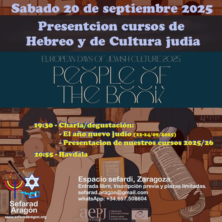 Entrada libre con inscripción previa y plazas limitadas por WhatsApp + 34 657 508604 y email: sefarad.aragon@gmail.com