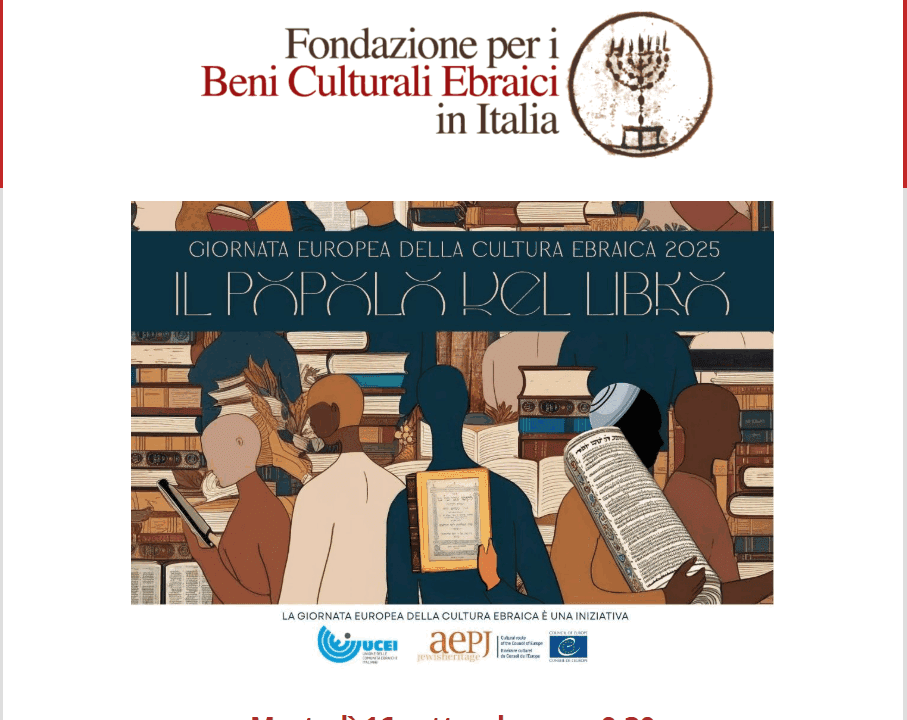 L’iniziativa è realizzata in occasione della Giornata Europea della Cultura Ebraica 2025, promossa dall’Unione delle Comunità Ebraiche Italiane (UCEI) e dalla European Association for the Preservation and Promotion of Jewish Culture and Heritage (AEPJ), che quest’anno affronta il tema “il popolo del libro”.