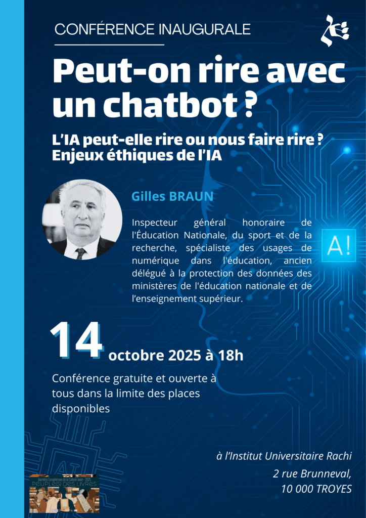 Dans le cadre des JECPJ et de l’évènement national « Biblis en folie », en partenariat avec la Médiathèque Jacques Chirac de Troyes, le GIP Rachi, viendra éclairer les enjeux d’« Éthique, mémoire et société : penser le futur » à travers une approche patrimoniale traitant de l’innovation au Moyen Âge. Petits et grands découvriront Rachi, savant visionnaire né à Troyes, qui réinventa au XIe siècle la transmission du savoir. Jeux, manuscrits, alphabet hébraïque ou encore atelier Playmobils vous serons proposés : une plongée ludique dans un passé où l’on pensait déjà le futur à travers l’étude, le partage… et les livres